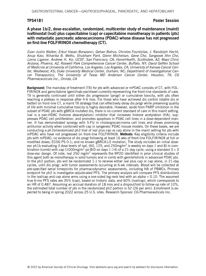 (2022) CG-745-2-08: GASTROINTESTINAL CANCER - GASTROESOPHAGEAL, PANCREATIC, AND HEPATOBILIARY Poster Session (TPS4181)