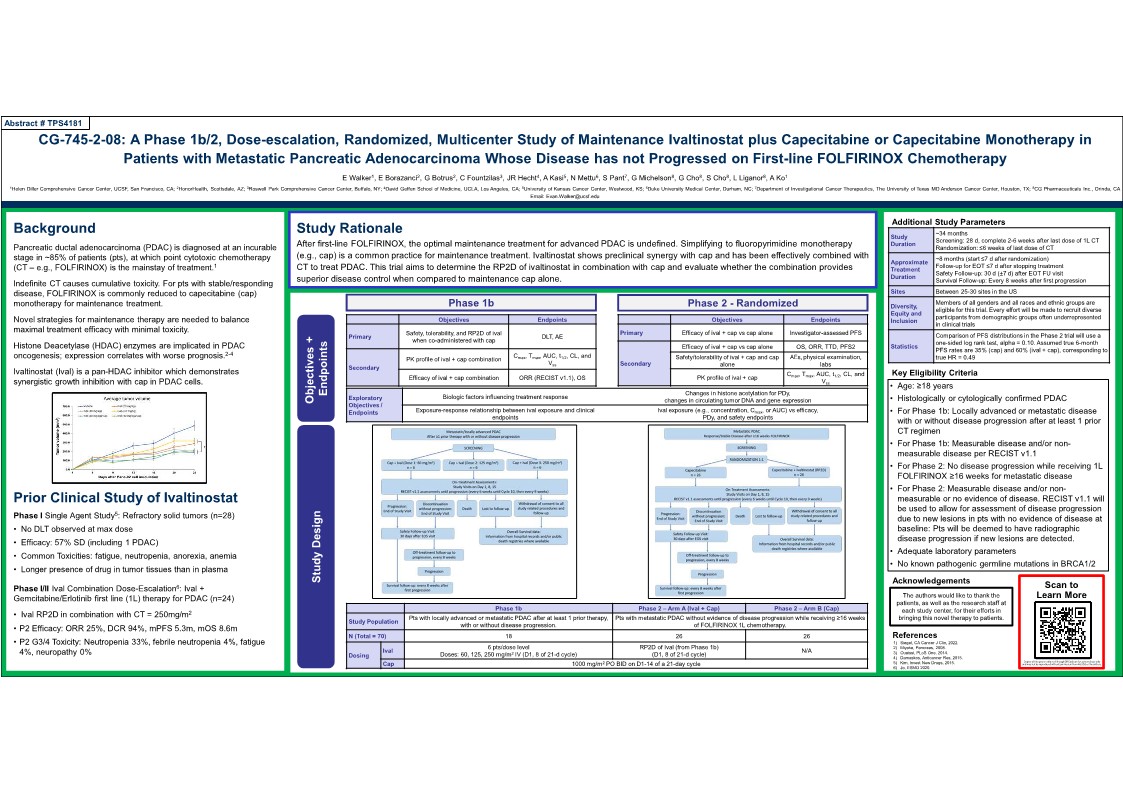CG-745-2-08: A Phase 1b/2, Dose-escalation, Randomized, Multicenter Study of Maintenance Ivaltinostat plus Capecitabine or Capecitabine Monotherapy in Patients with Metastatic Pancreatic Adenocarcinoma Whose Disease has not Progressed on First-line FOLFIRINOX Chemotherapy