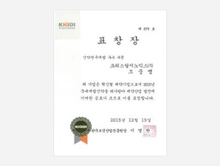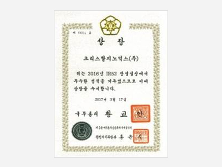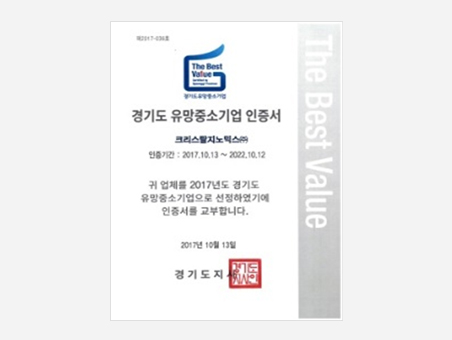 Certificate for the Most Valuable SMEs from Gyeonggi Provincial GovernmentGovernor of Gyeonggi Province