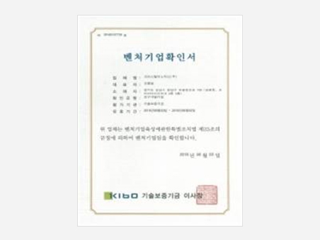 Certificate of venture companyKIBO Korea Technology Finance Corporation
