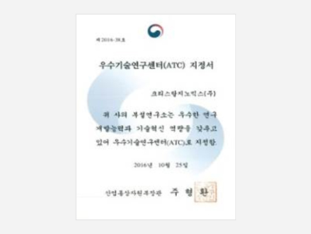 Certificate of designation as an Advanced Technology Center (ATC)Minster of Ministry of Trade, Industry and Energy