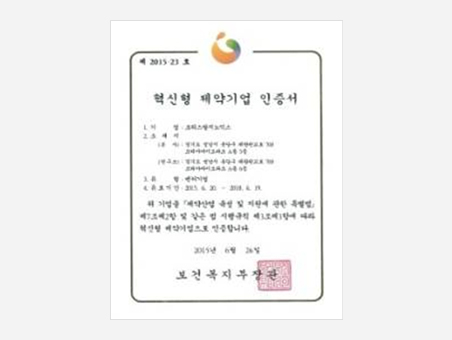 Certificate of designation as Inno-Biz companyMinistry of Small and Medium Business Administration, Republic of Korea