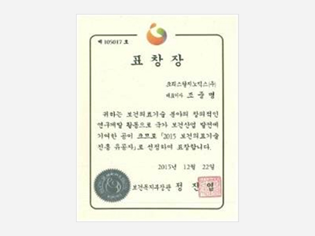 Award CertificatePresident of Korea Health Industry Development Institute